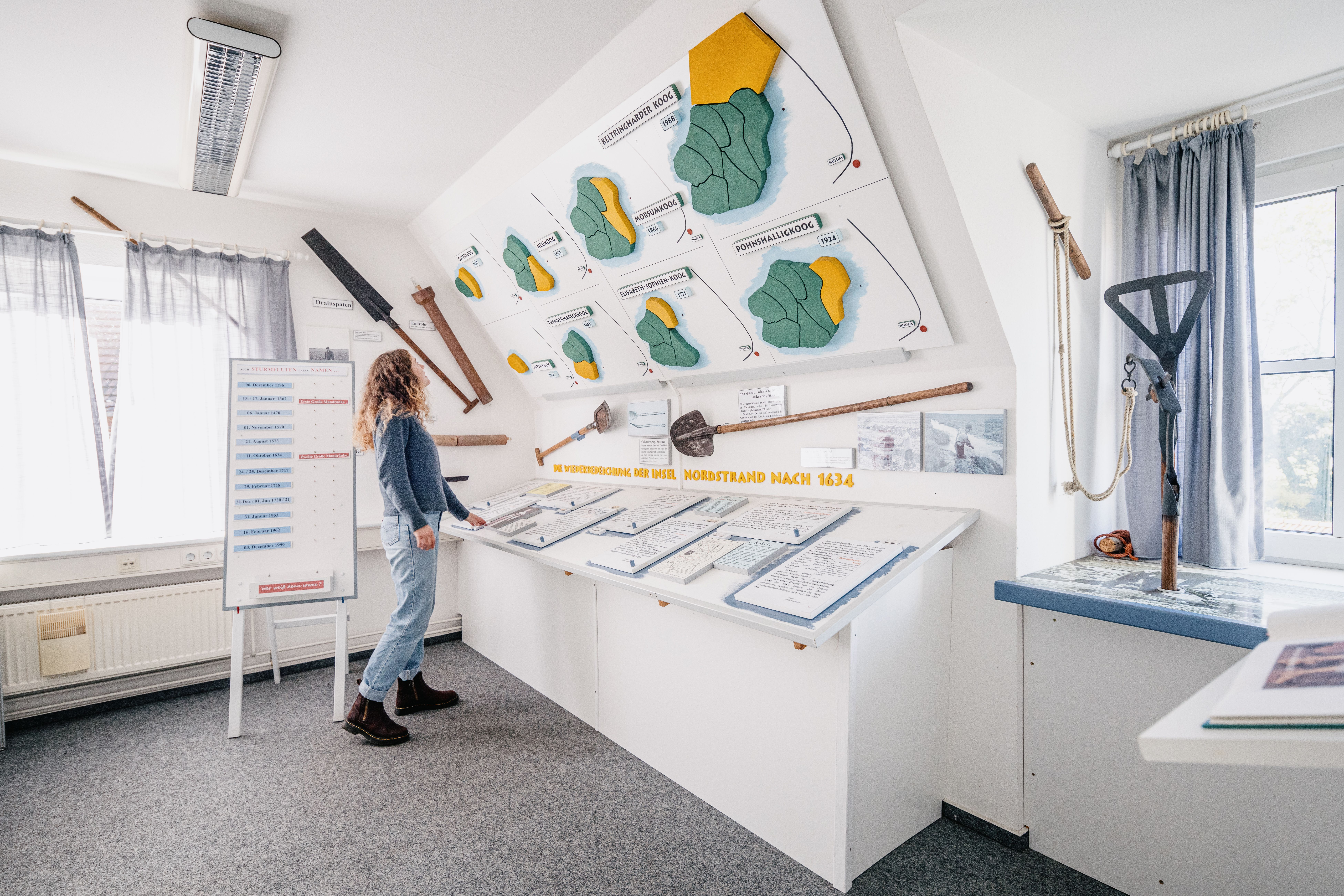 Das Inselmuseum erzählt euch von Rungholt, der Geschichte der Inselentstehung und nicht zuletzt von Tatkraft, Mut und Heimatliebe der Nordstrander zu ihrem besonderen Fleckchen Erde. Das kleine Inselmuseum wurde vom Heimatverein eingerichtet und wird liebevoll betreut. Das Museum liegt im 1. Stock über der Arztpraxis und ist barrierefrei über einen Aufzug zugänglich.