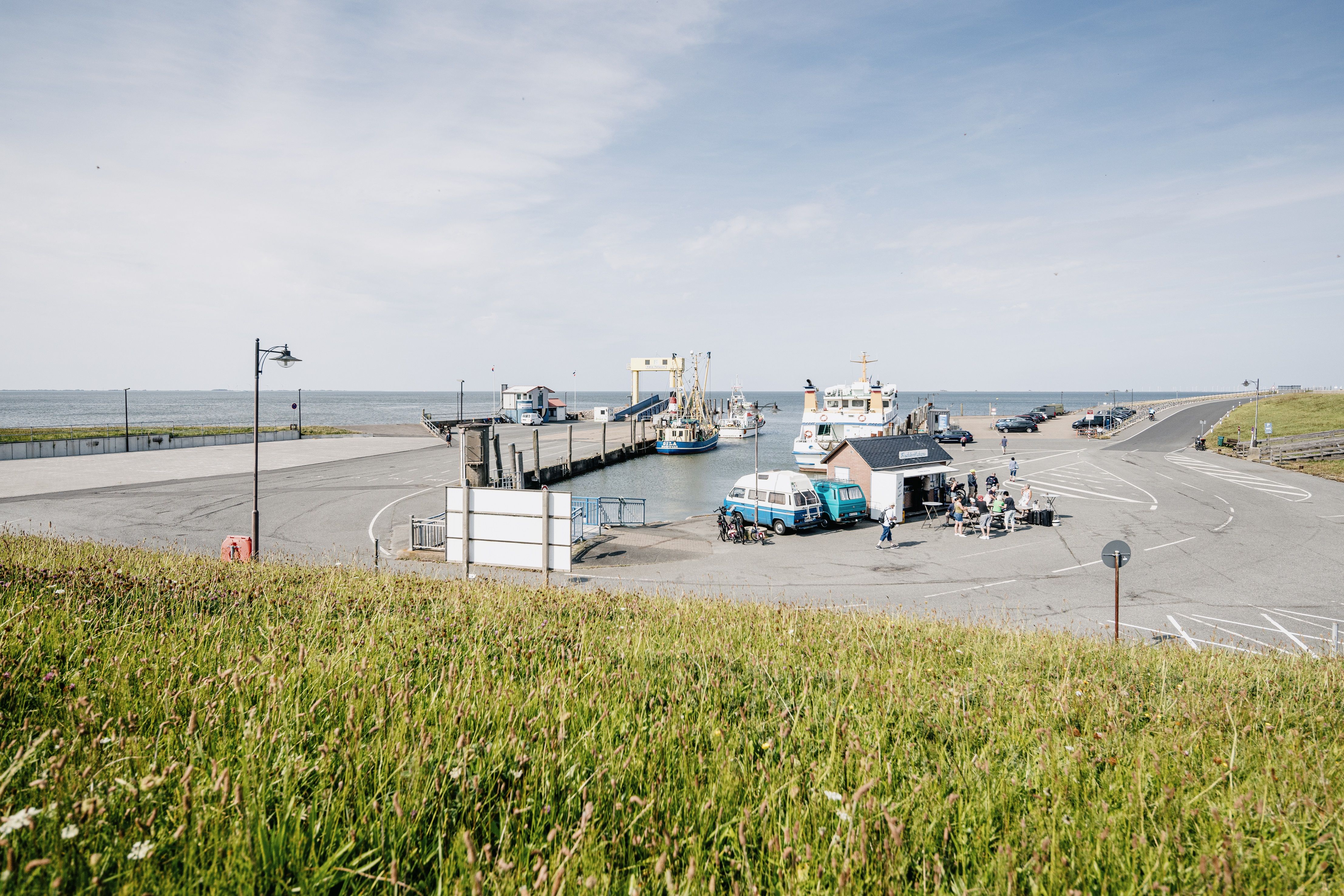Ob Kaffee, Tee oder ein kühles Getränk – bei Tünn Fofftein kannst du dich stärken, bevor es auf die Fähre geht oder nach einem Spaziergang am Deich einfach mal eine kleine „Fofftein“ (norddeutsch für Pause) einlegen.